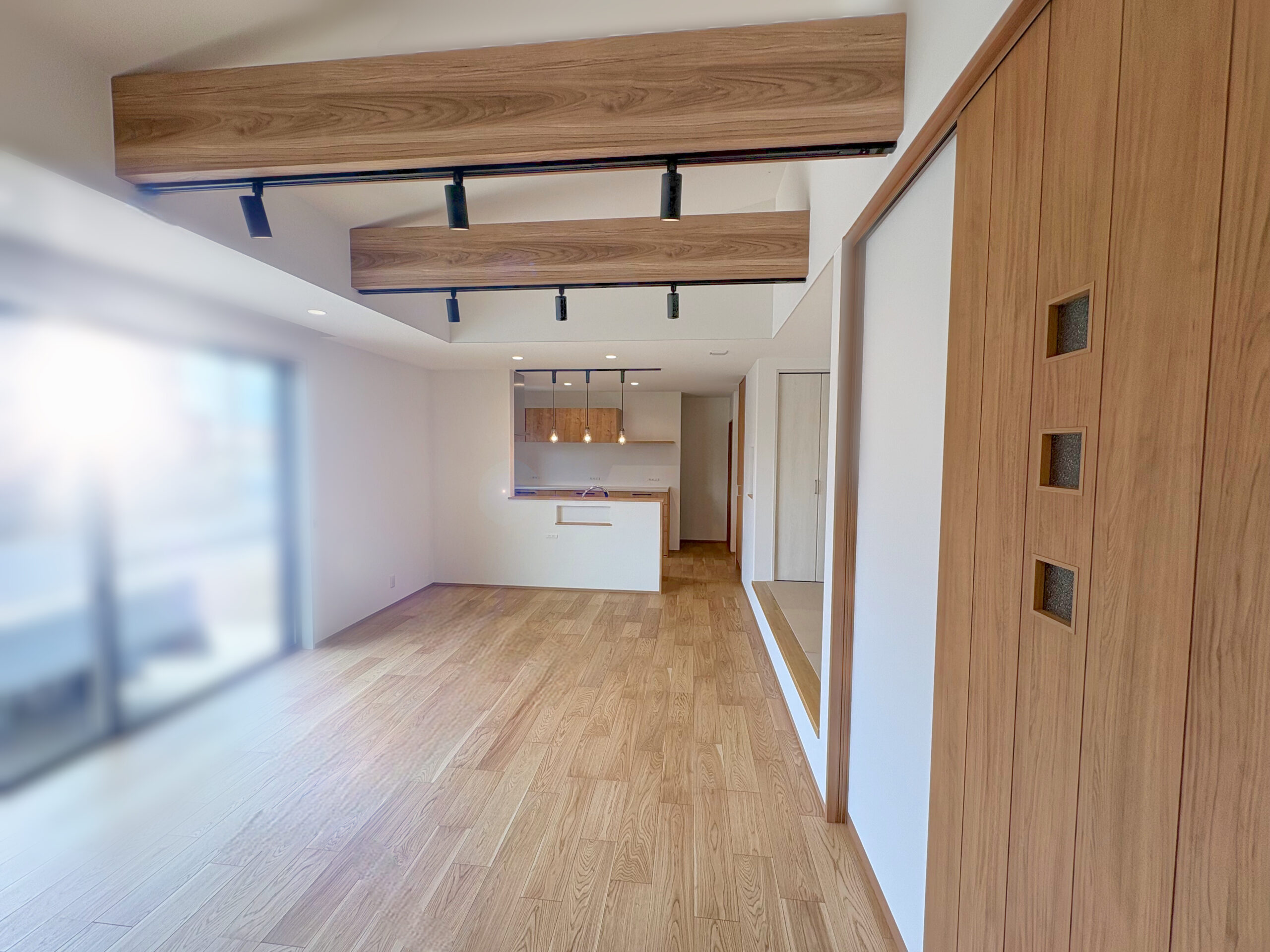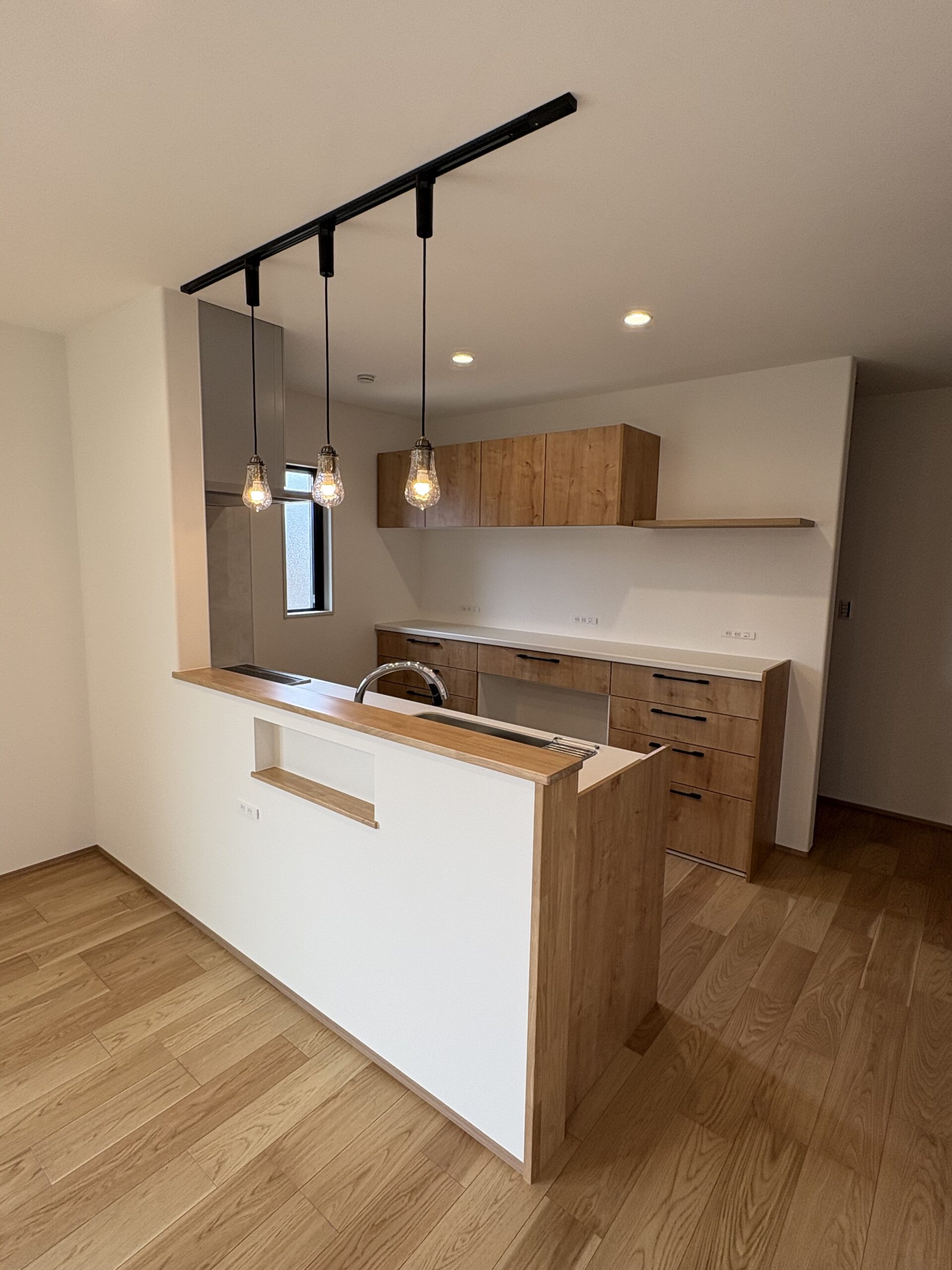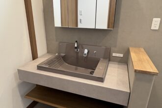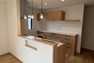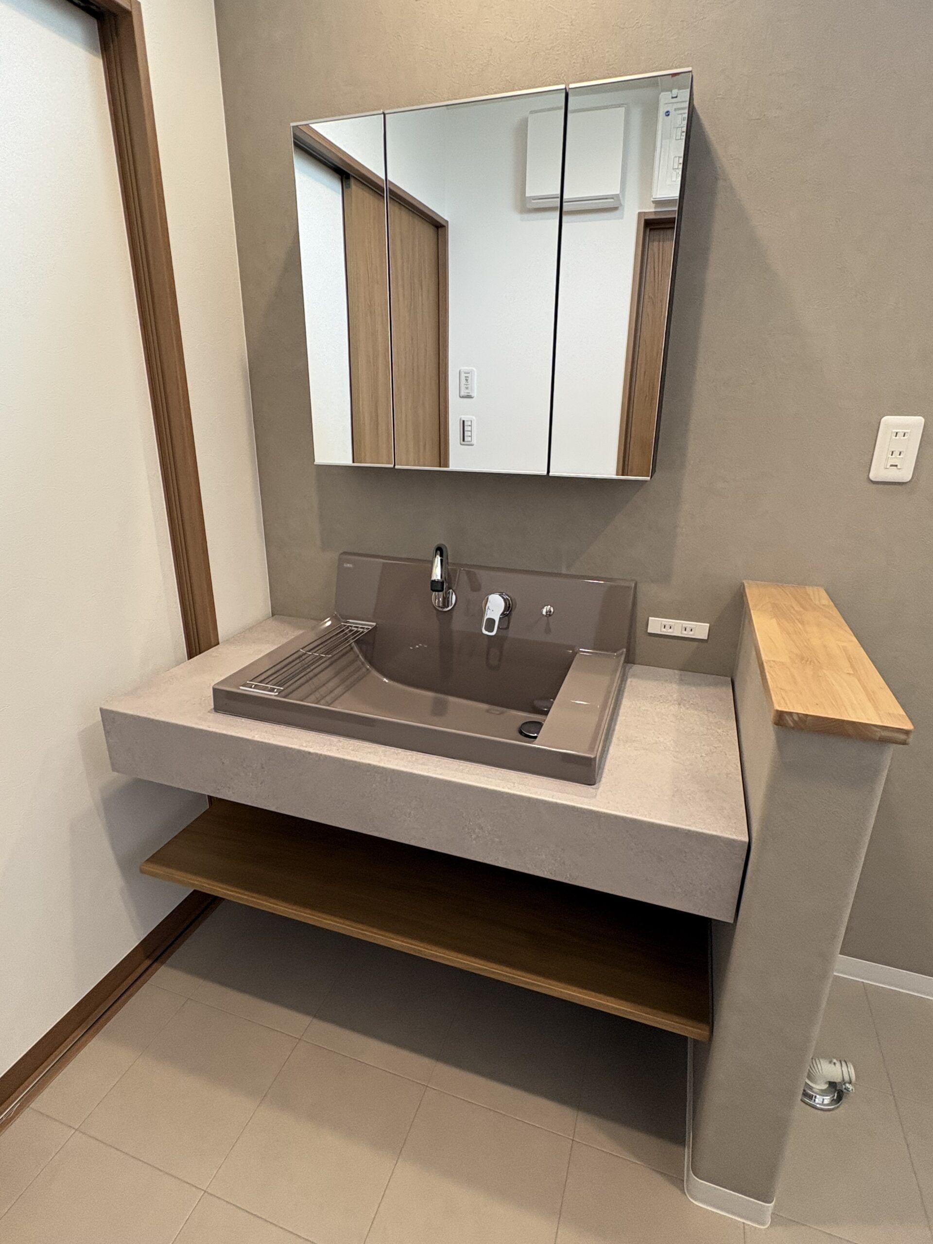 ウォルナットの重厚感ある玄関や、デザイン性と実用性を兼ね揃えた洗面台など、機能美を追求したお住まいが出来ました。